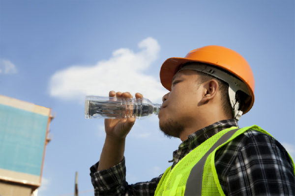 Don’t wait until you see the signs of dehydration, or even feel thirst, to drink water. You will lose a large amount of water through sweat while working and research has found that you will not become thirsty enough to naturally replace it all. So, replace your fluids by frequently sipping your beverage throughout the day, even if you do not feel thirst. NIOSH recommends workers in high heat drink 1 cup (8 oz.) of water or their fluid of choice every 15 to 20 minutes. Remember that it is typical for workers in high heat conditions to lose 6 to 8 liters (211 to 281 oz.) of fluid through sweat a day—all of which has to be replenished.