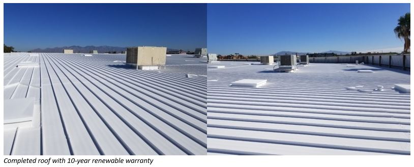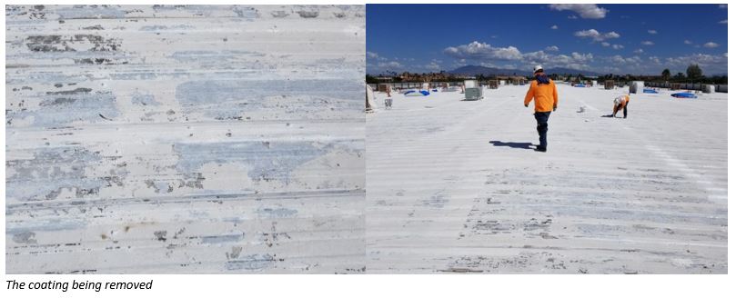 In most cases, Western Colloid’s fluid applied roofing products are a perfect alternative against removing a roof, but in this case the acrylic substrate was so unstable and the roof had so much moisture, removal was really the only answer.